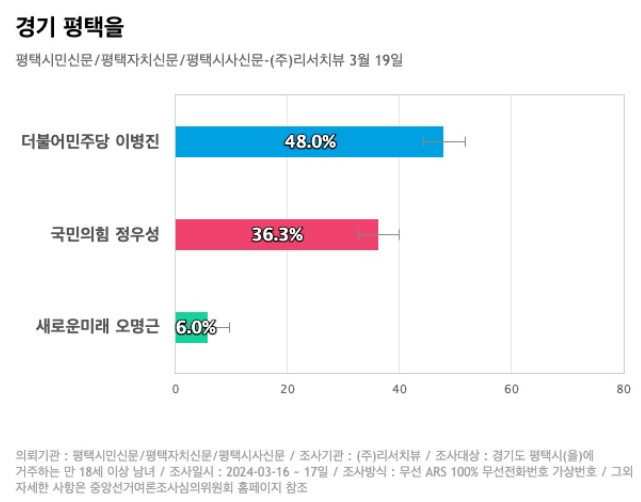민주당 이병진 후보 48%, 국민의힘 정우성 후보 36.3%,