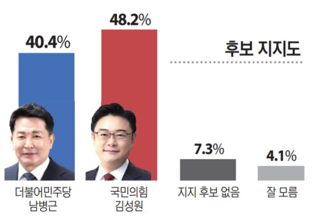 민주당 남병근 40.4%, 국민의힘 김성원 48.2%