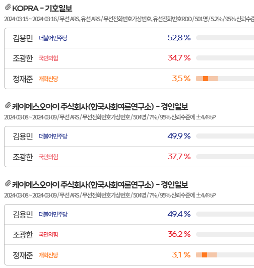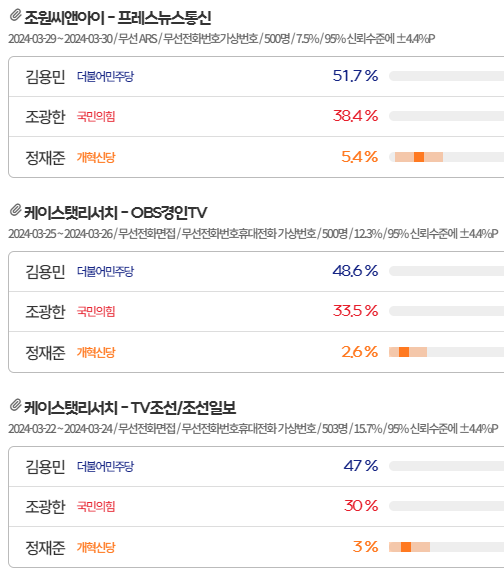 22대 총선 여론조사 모음 서울 서울,부산, 충청남북, 대전,세종, 경기도,인천 /조국혁신당 광풍이