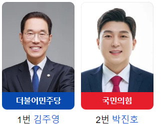 민주당 김주영이 국힘당 박진호를 14.39% 차이로 민주당 표가 갈렸음에도 압승