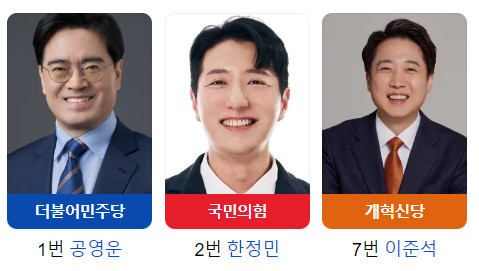민주당 공영운 44.2% 국힘당 한정민 19.5% 개혁신당 이준석 28.2%