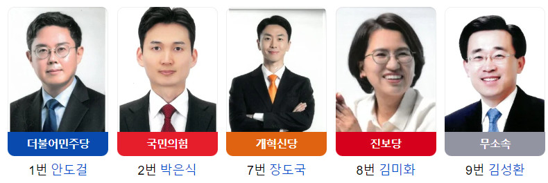 민주 안도걸 51.2% 무소속 김성환 25.2%