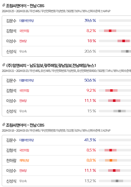 그런데 20%의 지지율은 참 대단하네. 새누리당 이름으로 2014년 유래 없는 쾌거를 이루어준 곡성군·순천시 재보궐선거 당선 그리고 20대도 선사하는 순천이었다.