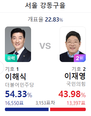 이해식 당선 이번이 재선 전 전 강동구청장으로도 3선