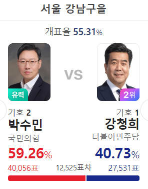 박수민 당선 유력, 그래도 강청희의 득표율이 높다. 의사들 힘일려나?