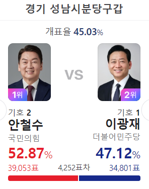 헐, 파한뿌리 이수정이 이기고 있다니...275표다 역전 가자, 배현진과 더불어 꼴 보기 싫다.