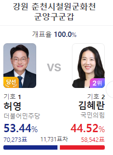 수원갑 김승원,김현준 김승원 당선 유력 수원을 백혜련,홍윤오 백혜련 당선 유력 수원병 김영진,방문규 김영진 당선 유력 수원정 김준혁,이수정 헐, 파한뿌리 이수정이 이기고 있다니...275표다