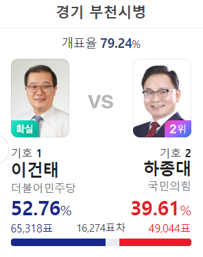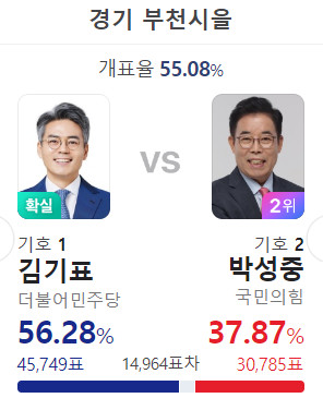 김기표 당선. 박성중 안봐서 속 시원하네, 설훈은 3선이나 한 곳인데도 6.07% 선거비 보전은 저 멀리로...진짜 득표율 없네