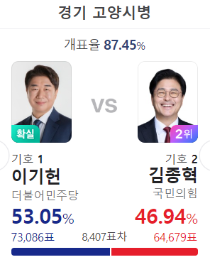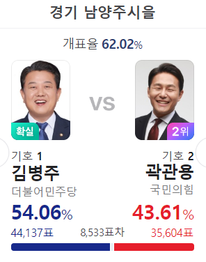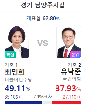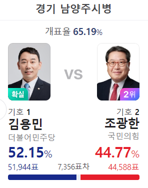 김용민 당선 , 조광한의 시장 파워도 무섭긴 하네.