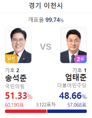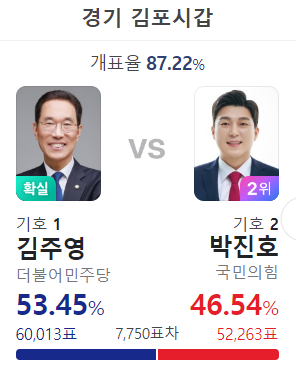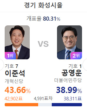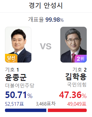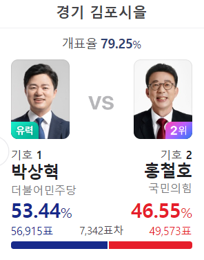 상대 박윤국의 득표율이 많아졌고 이 지역은 국힘당 텃밭인데...