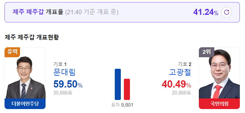 문대림 당선 유력