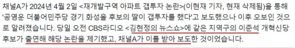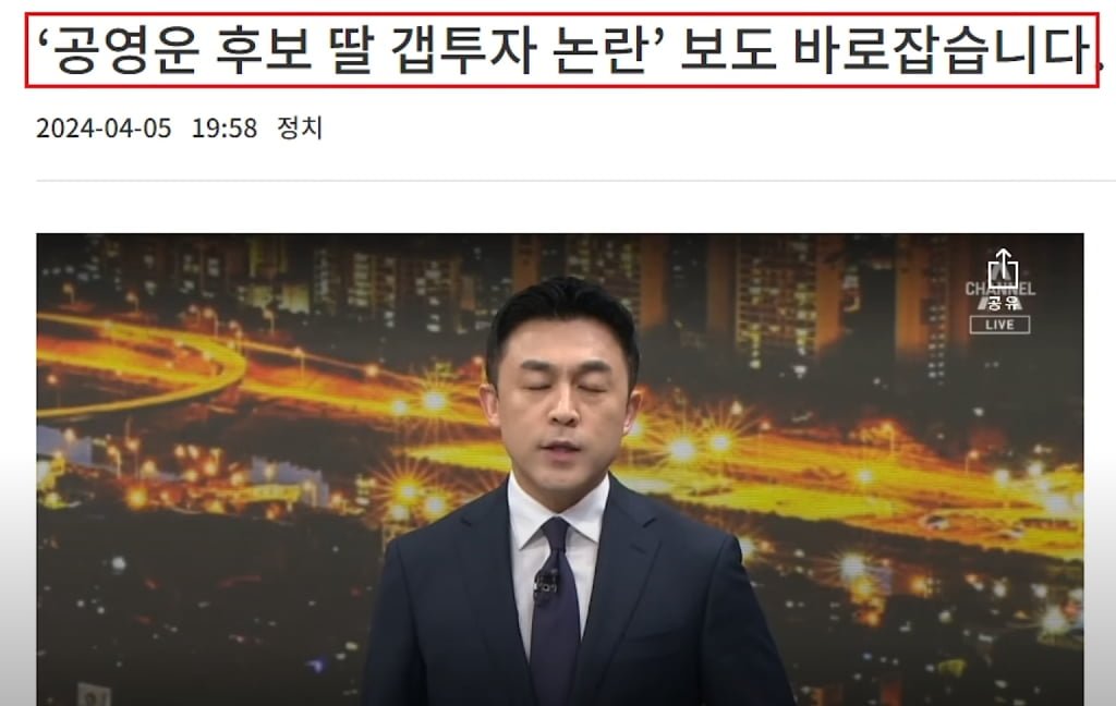 공영훈 딸에 대한 허위사실, 이걸 채널 A에서 인용 보도했는데, 사실이 아니라 급사과 했다.