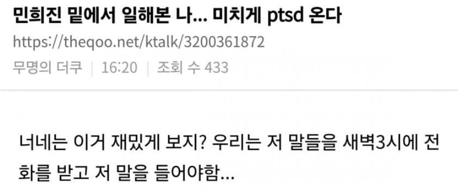 민희진 기자회견을 보고 올라온 글..직원들 달달 볶는 상사인 것 만은 틀림없다.