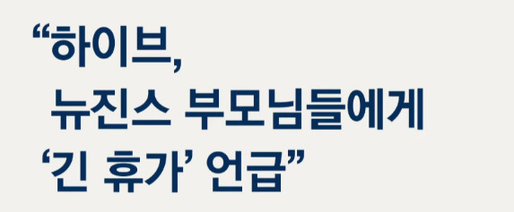 1년 6개월 긴 휴가... 민의 기자회견 날 찾아간 뉴진스 부모들에게 박지원은 아이들에게 긴 휴가를 주겠다고 저런 말을 했을 정도니 부모들이 민희진 편을 드는 것은 당연할 것도 같네요. https://m.entertain.naver.com/article/241/0003350217
