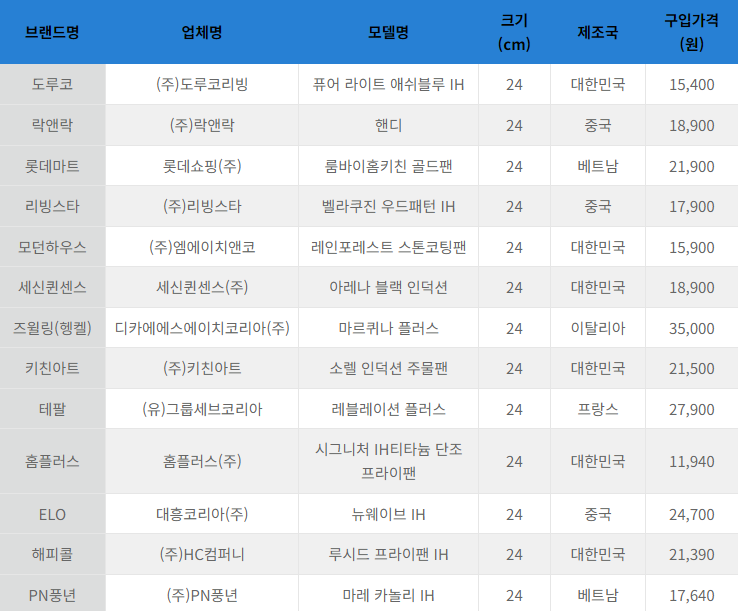 | [정보] 프라이팬 내구도 소보원 도루코, 락액락, 리빙스타, 모던하우스, 즈윌링, 홈플러스, ELO, PN풍년 우수/테팔 윙미 (1) | 2023.07.09 |