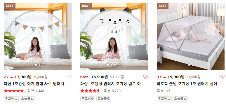 아 참고로 이건 바닥에도 모기장이 있는 모델이다 저렴한건 거의 없는데