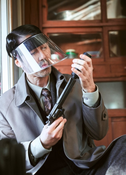 살인 하기 전에 얼굴에 위험한 피 튈까봐 썬바이즈인가 쓸때는 배꼽을 잡았네요...