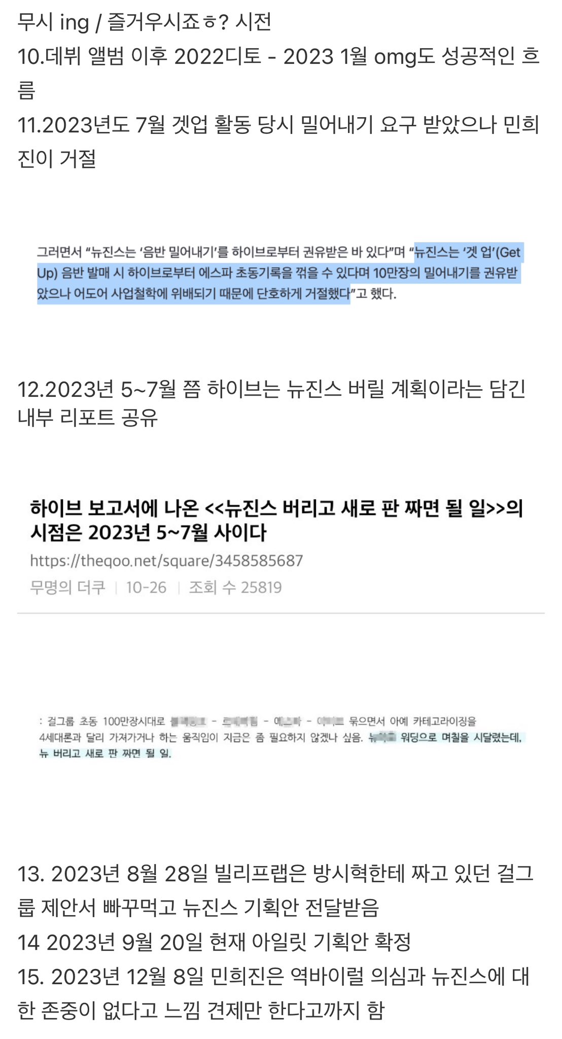 민희진이 하이브 방시혁과 사이가 틀어진 타임라인을 이번에 나온 문구와 대조해서 한번 보자