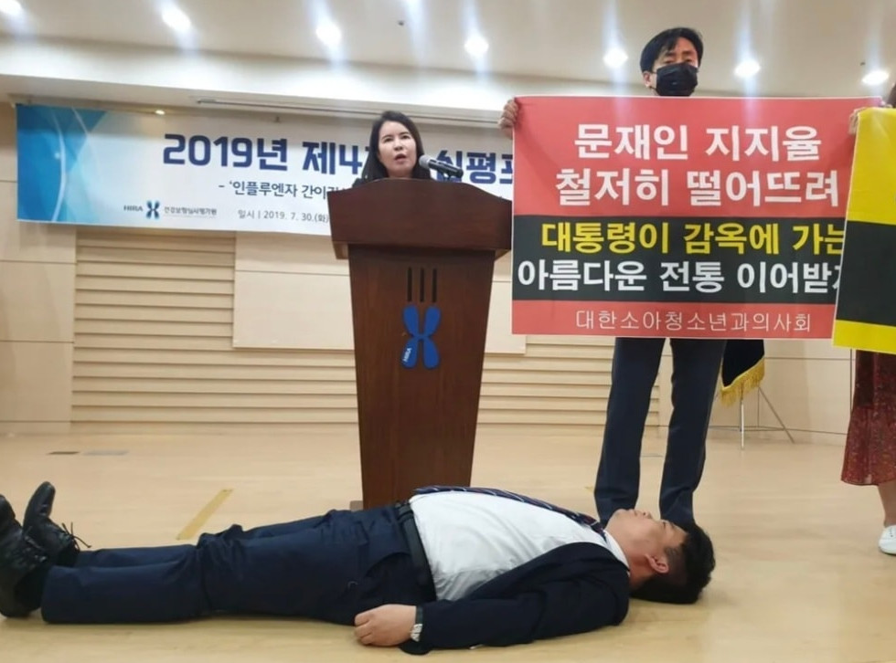 바닥에 눕는 퍼포먼스를 보여주었던 임현택.