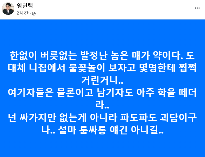 무슨 말인지는 모르겠지만 박단을 겨냥한 것은 알겠는데 개인사 까발리는 수준이 노가다 형님들 썰 푸는 것보다 더 강렬하네요 ( 지금은 이 글이 안 보입니다. 열받아서 일단 무작정 올리고 후회한 건지..)