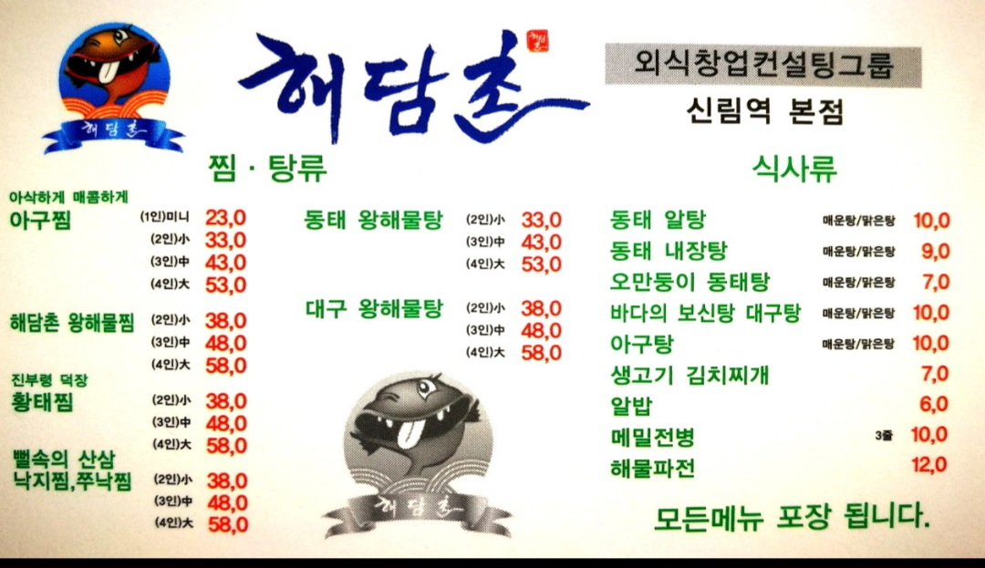 아구찜,해물탕 등을 하는 식당입니다.