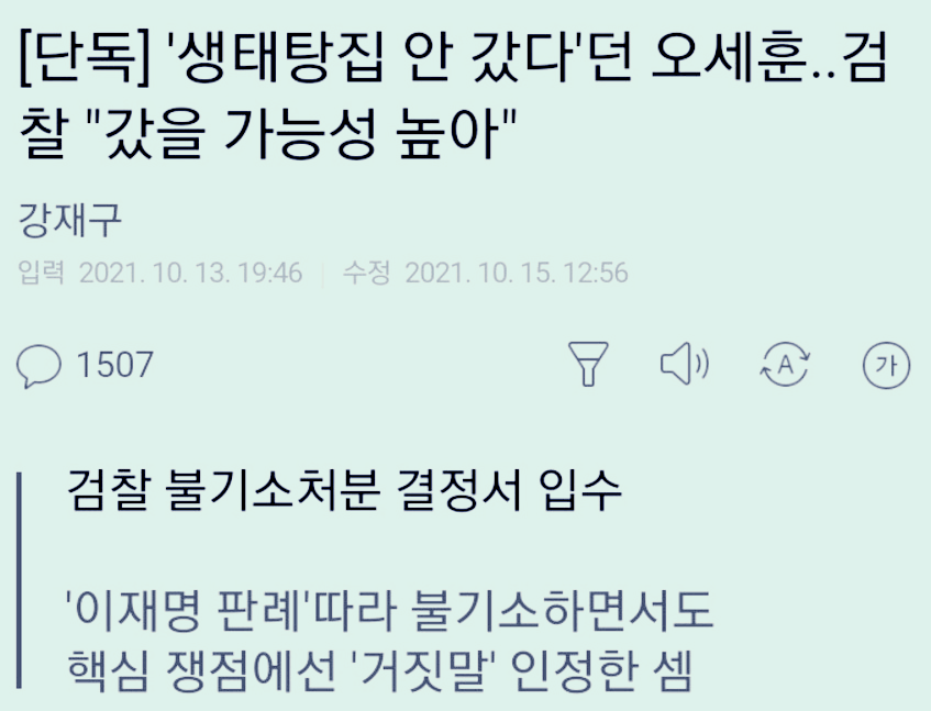 하지만 여전히 국힘당은 불기소 받아서 생태탕은 가짜뉴스라고 한다.