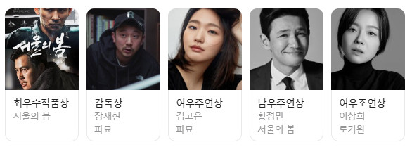 최우수작품상 서울의봄, 감독상 장재현(파묘), 여우주연상 김고은(파묘), 남우주연상 황정민(서울의 봄), 여우조연상 이상희(로기완)