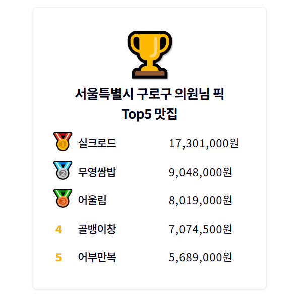 강남구를 이긴 1등,2등,3등은 누굴까요 찾아봅시다.