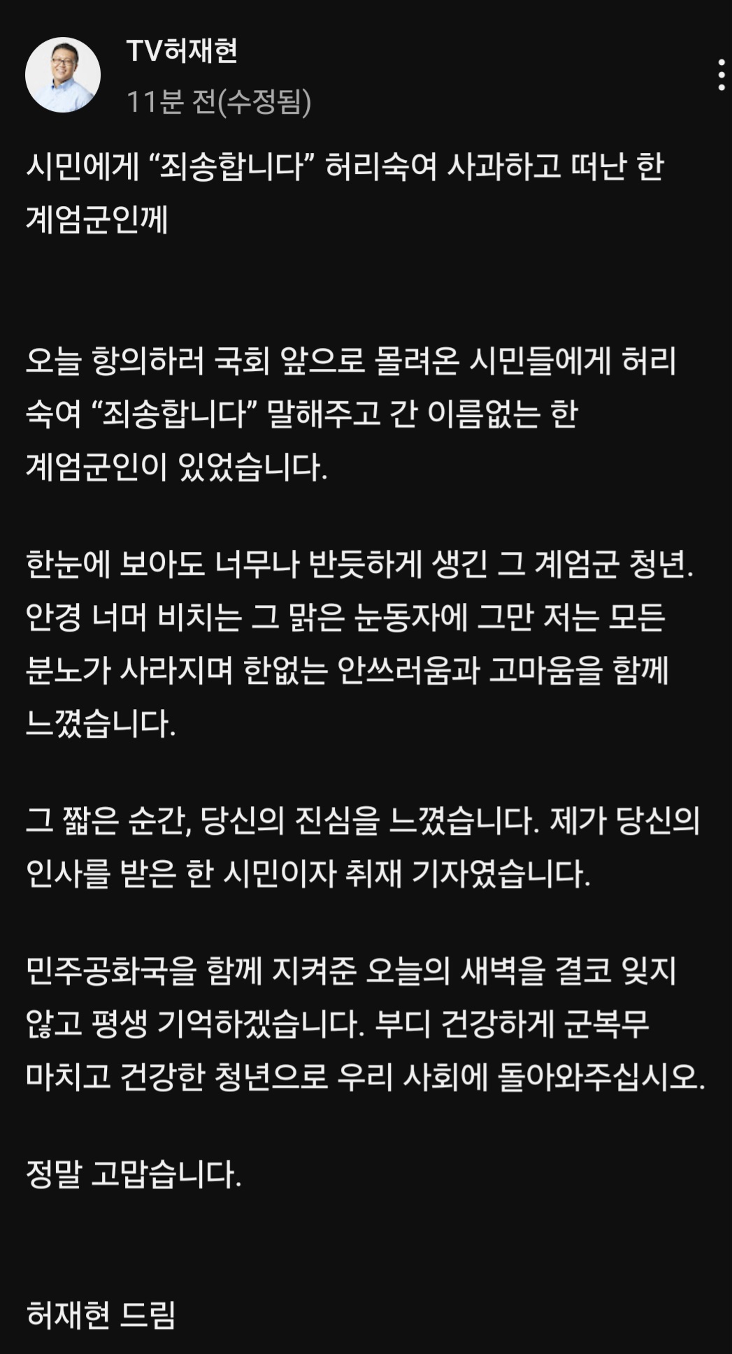 군인들의 적극적인 도움으로 비상계엄 해제 성공을 한 줄 알았던 국회에 나가 있던 시민들은 그들에게 이렇게 이야기 했어요