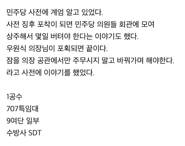 | 비상계엄선포 2시간 천하/ 수방사 특임대 이재명, 우원식, 한동훈 체포조 움직였었다 (0) | 2024.12.04 |