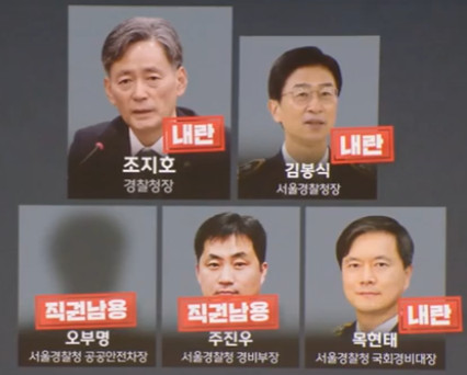 경찰청장 조지호, 서울청장 김봉식, 공공안전차장 우부명, 서울경찰청 경비부장 주진우, 국회경비대장 목현태