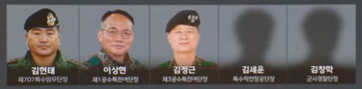 707 특수임무단장 김현태, 제1공수특전여단장 이상현, 제3공수특전여단장, 특수작전 항공단장 김세운, 군사경찰단장 김창학 그리고 지역에서 움직였던 공수부대 단장들