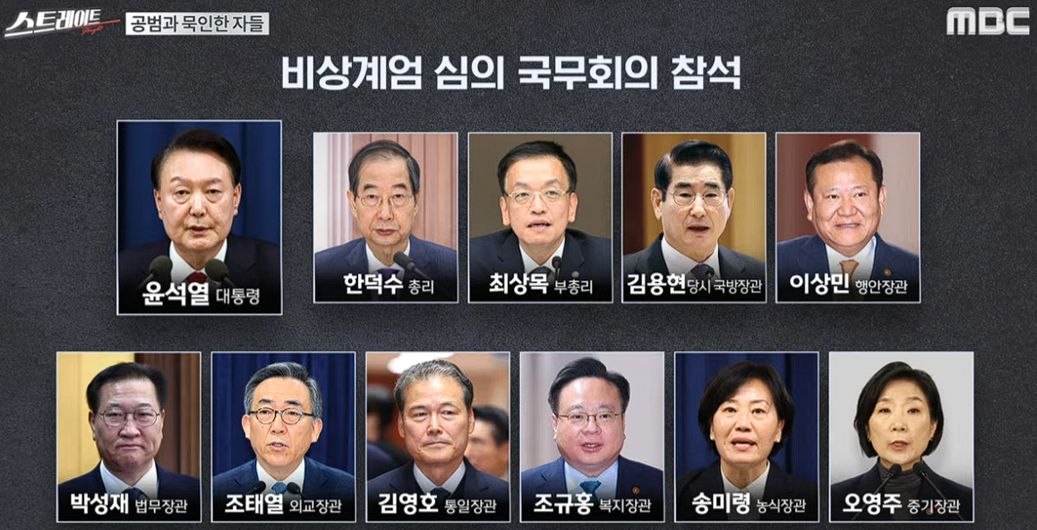 | 12.3 비상계엄 심의 국무회의 참석자 명단 /윤석열, 한덕수, 최상목, 김용현, 이상민, 박성재, 조태열, 김영호,조규홍,송미령,오영주 (0) | 2024.12.09 |