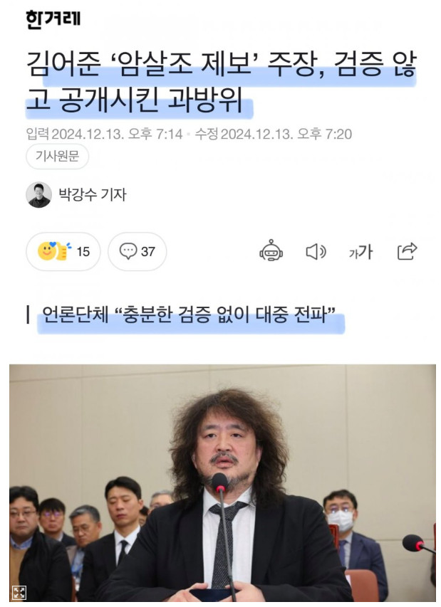 그런데 한겨레는 언론개혁시민연대가 검증 안하고 터뜨렸다고 이들 주장을 옮겼는데 한겨레가 말하고 싶은거 해줘서 땡큐 하면서 기사를 올렸을거라는 생각이 지배적이네.....이 시국에도 착한짓 공정한척 이딴 거 혐오스럽다.