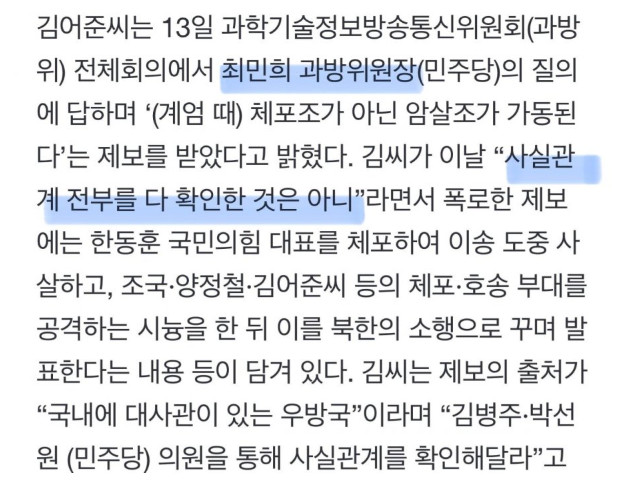 저 기사 이전에 이미 국회에서 김선원 의원이 정보사령관 문상호를 심문하는 도중에 나왔던 말이기도 한데 오마이뉴스가 좀 더 파고 들었음.