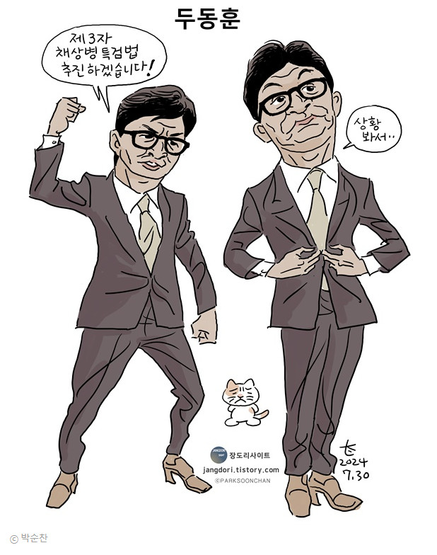 이제 김건희 특검으로 철컹철컹은 시간 문제라, 그동안 윤석열과 온갖 못된짓 다한 동훈이 너의 증거를 그냥 두겠냐...