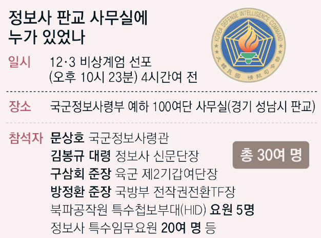 5명은 판교 정보사 사무실로 이동했고, 나머지 35명도 수도권의 모처로 이동해 대기.