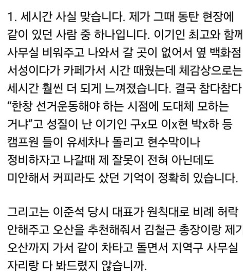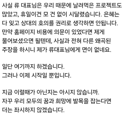 2. 본인은 무슨 제3자, 관찰자인듯하게 논평하듯이 얘기함. 실제론 본인 페북때문에 더 난리가 났음. 제3자 스텐스를 할거면 본인이 중재를 해서 같이 잘 해결해 나가겠다 라는 정도는 얘기했어야함.