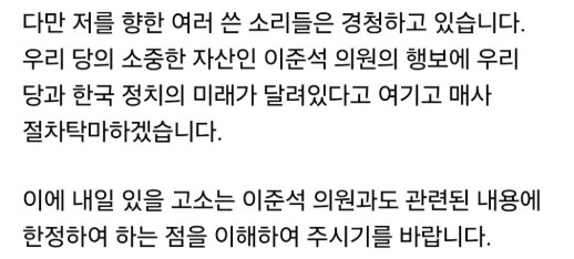 이준석 의원은 사고친사람이 해결하라며 허대표 저격 글 업로드함