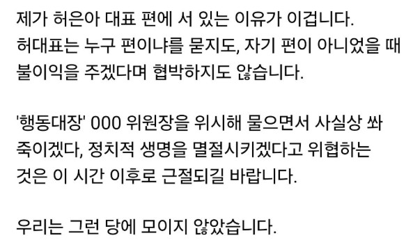 기본적으로 중립적인 태도지만 당대표와 지도부를 향한 쓴소리는 섞여있음
