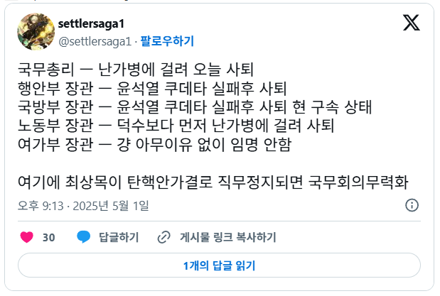 이제서야 최상목 탄핵한단다.(바로 사표) 발등에 불 떨어진 걸 넘어서 온몸에 불 붙으니 움직이고 있다. ㅆㅂ