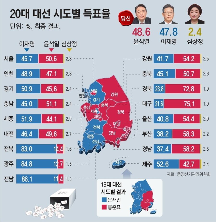 일단 20대 대선 지역 결과를 보자