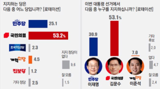 김문수 53.1%, 이재명 30.9%, 이준석 7%