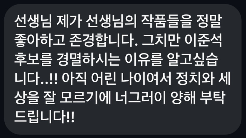 어린 학생의 질문인 이준석을 경멸하는 이유 글에 박시영 디자이너는 인스타그램에 답변을 적어 올립니다.
