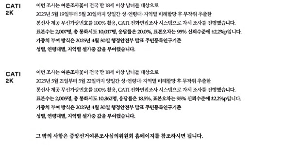꽃(4천명 19~22일):이재명 50.5% 김문수30.3% 이준석 9.1%