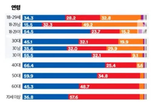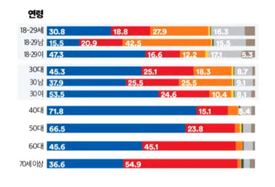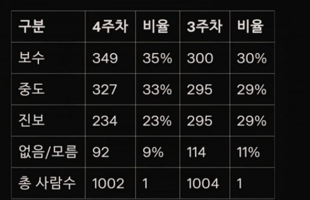 그런데 갤럽의 여론조사는 큰 문제가 있다. 갤럽 뿐아니라 ARS여조도 그렇지만 보수의 과표집이 너무 심하다는것. 가중치를 둔다고 해도 이 정도의 차이는 신뢰도를 박살낸다고 볼수 있다.