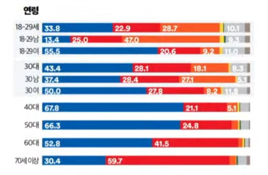 60대에서 이재명 지지율이 50%을 넘겼다.