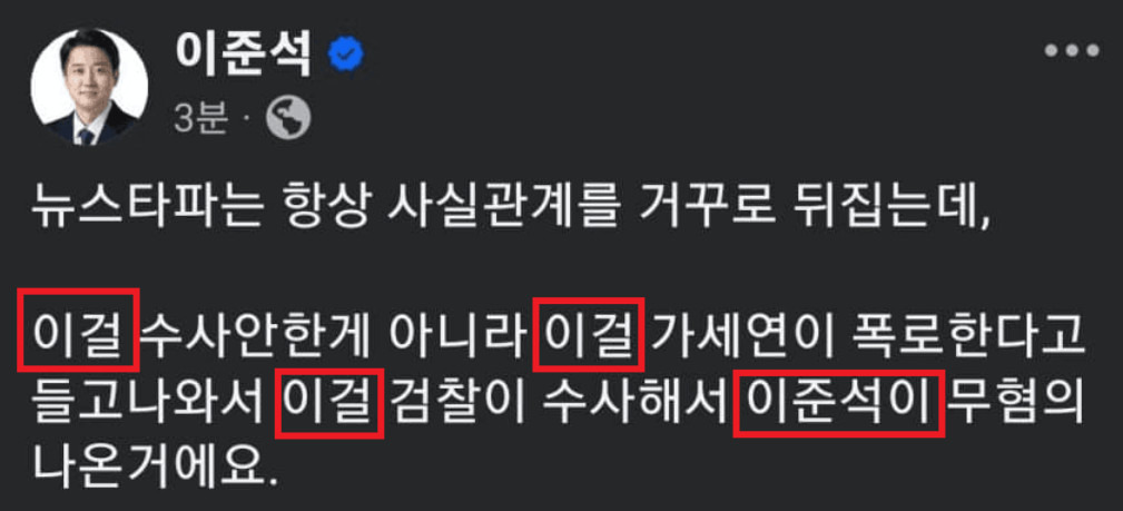 아이러니하게 이재명을 공격할땐 가세연이 진실이 되고, 이준석 자기를 공격할땐 가짜뉴스가 된다.
