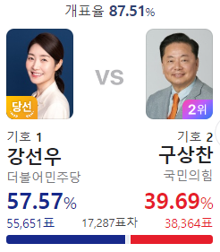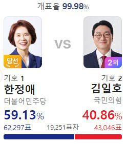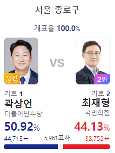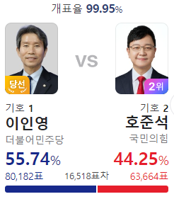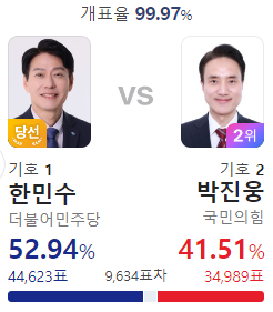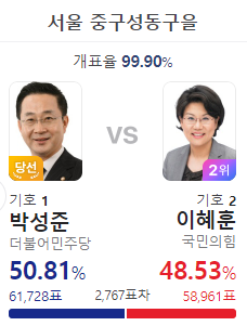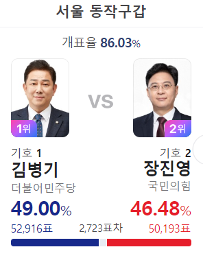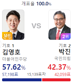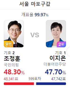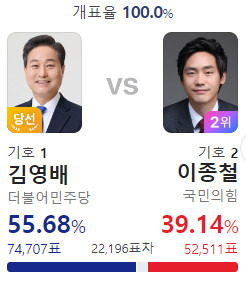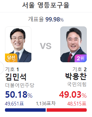 이런 표차라면 영등포구 을 김민석의 재선이 위험할 것 같은데