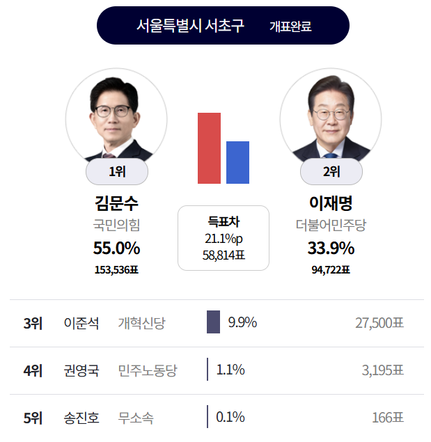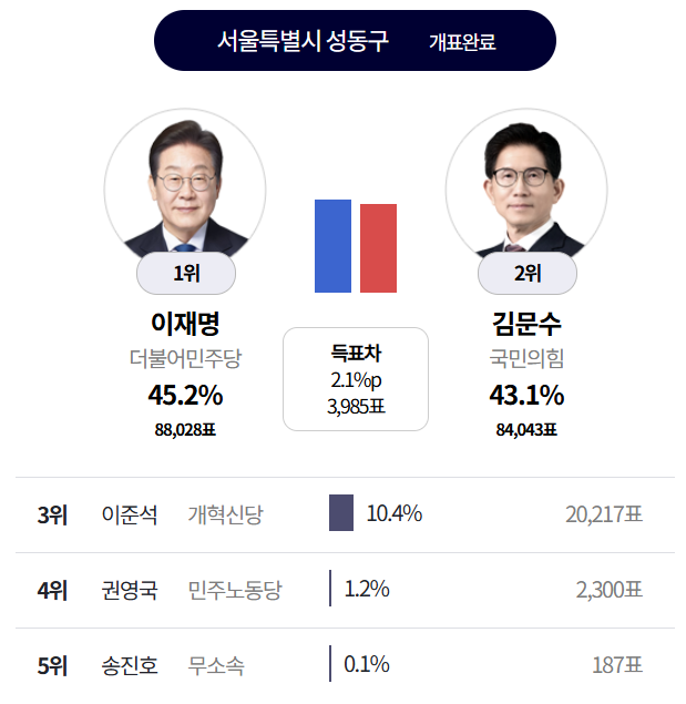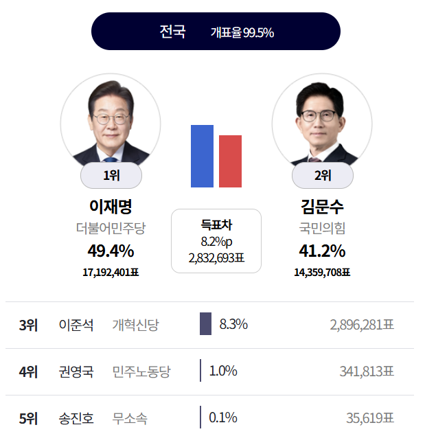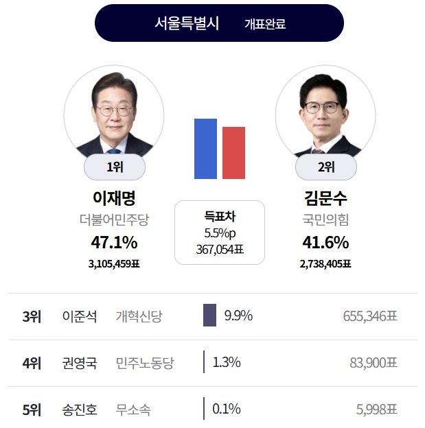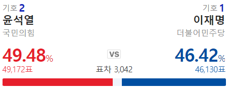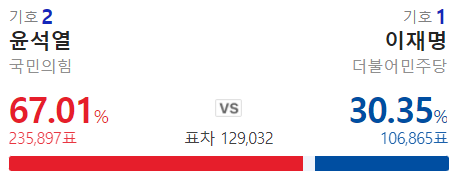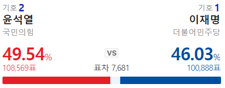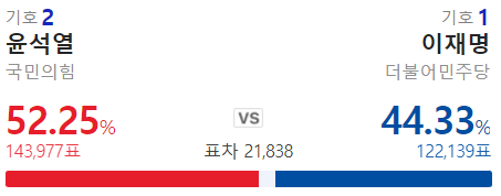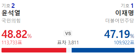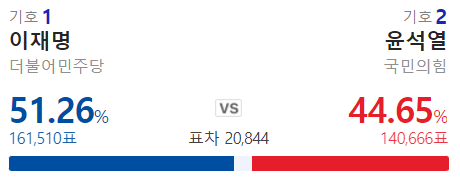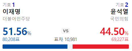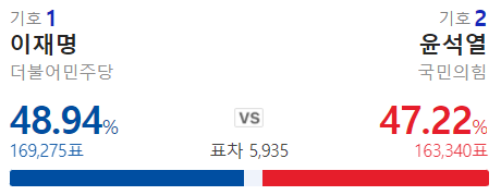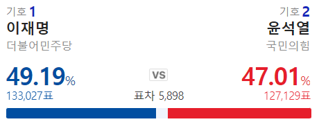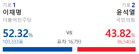 와우 내내 이재명이 지고 있었는데 막판에 역전 했구나.